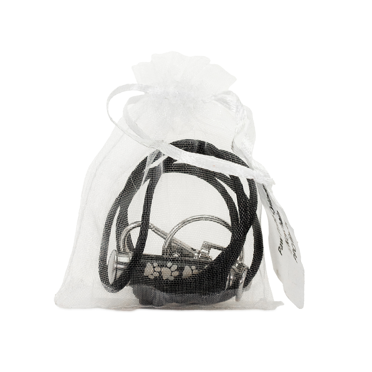 This is a discrete way to keep your animal's ashes with you as you go about your day. Our paw print cylinder shaped cremation jewelry pendant will hold 1/5 teaspoon of cremation ashes. Made of high-quality stainless steel that is bronze in color with laser etched paw prints on it. The pendant threads at the base and comes with a key chain component, a silk cord and is packaged in an elegant organza bag.