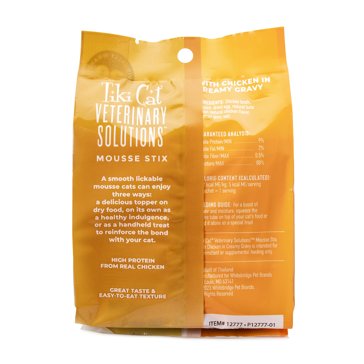 Make your furry friend’s vet visits a breeze with Tiki Cat Veterinary Solutions Mousse Stix Chicken Lickable Cat Treats. These highly palatable and smooth lickable treats are perfectly portioned to keep your feline friend occupied and stress-free during exams. Not only that, but they also help stimulate appetite in kitties who may not have much of an appetite. Made with recognizable ingredients like chicken and chicken broth, these treats are not only tasty but also easy to eat. Tiki Cat Veterinary Solutions offers specialized diets for common medical conditions, meeting the nutritional needs of your obligate carnivore. With no prescription required, these mousse stix are the perfect solution for any four-legged family member needing a stress-free exam.