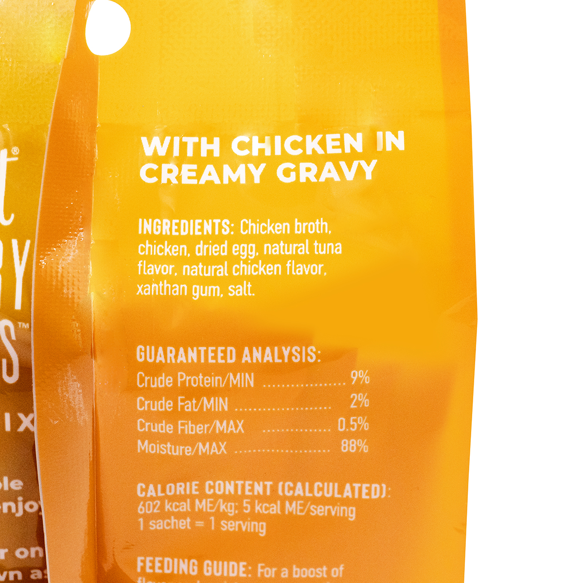 Chicken Broth, Chicken, Dried Egg, Natural Tuna Flavor, Natural Chicken Flavor, Xanthan Gum, Salt.