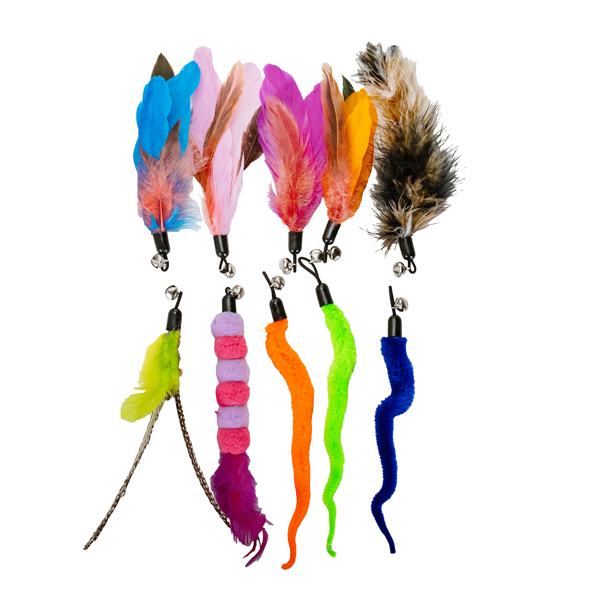 The strong suction base easily attaches to smooth surfaces, allowing for hands-free playtime that keeps your kitty pouncing and leaping for hours. Each teaser toy comes with two assorted feather attachments, offering variety and excitement every time your cat plays.