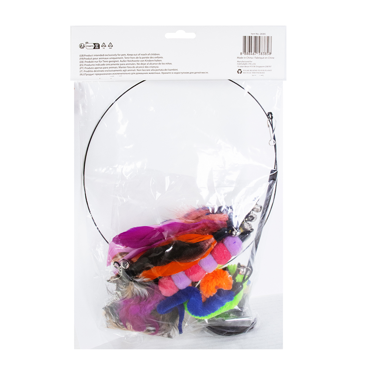 Keep your feline friend active, entertained, and engaged with the Pawise Cat Teaser Toy! Designed to satisfy your cat’s natural hunting instincts, this interactive teaser features a flexible wand and two interchangeable feather toys that flutter, twist, and dance through the air — just like real prey.