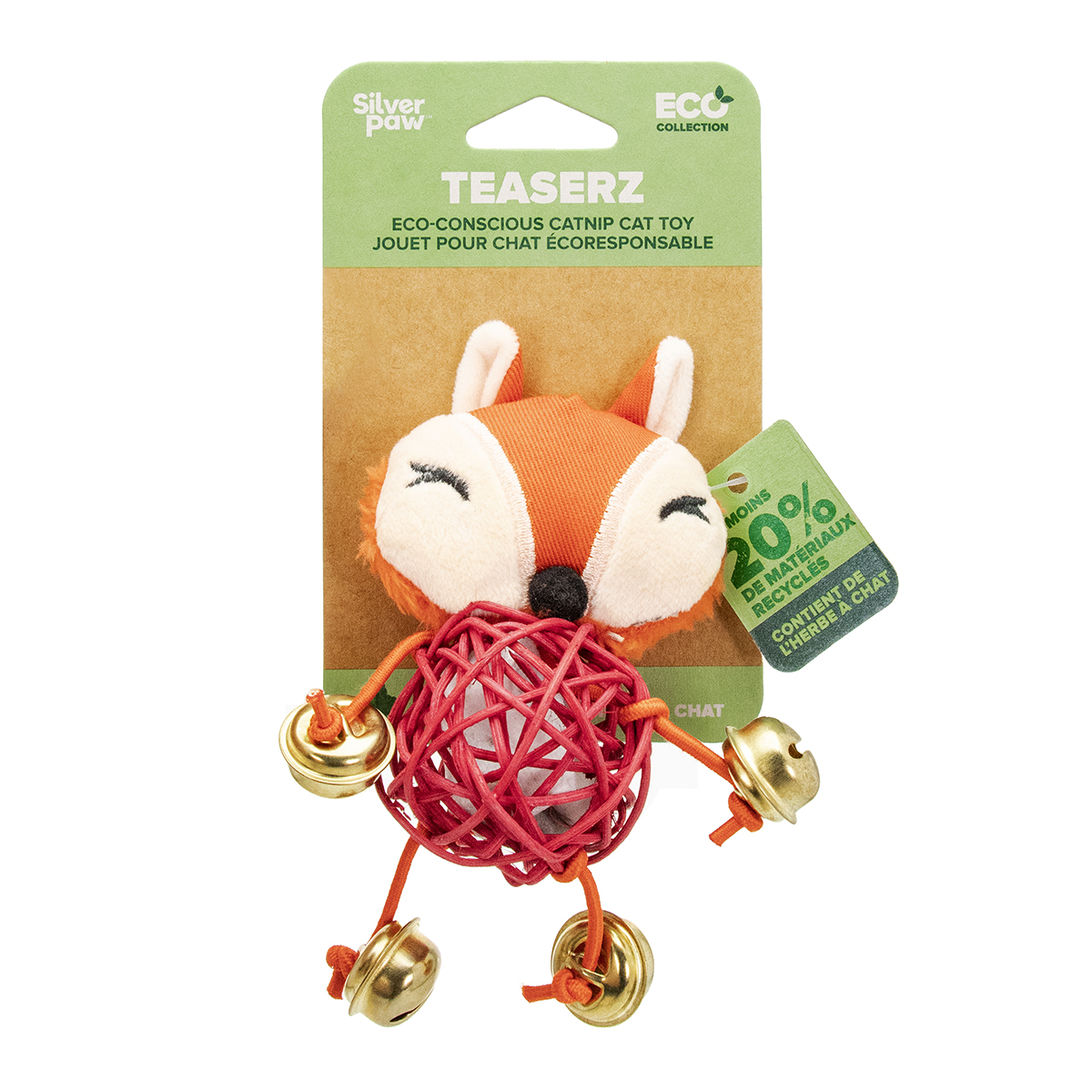 TOY CAT SILVER PAW ECO RATTAN BALL & BELLS - Fox