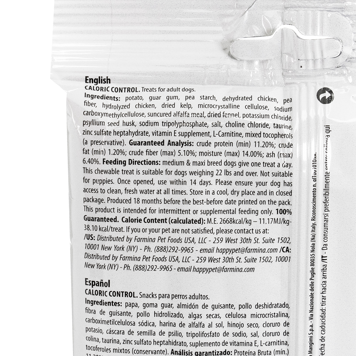Potato, guar gum, pea starch, dehydrated chicken, pea fiber, hydrolyzed chicken, dried kelp, microcrystalline cellulose, sodium carboxymethylcellulose, suncured alfalfa meal, dried fennel, potassium chloride, psyllium seed husk, sodium tripolyphosphate, salt, choline chloride, taurine, zinc sulfate heptahydrate, vitamin E supplement, L-Carnitine, mixed tocopherols (a preservative)