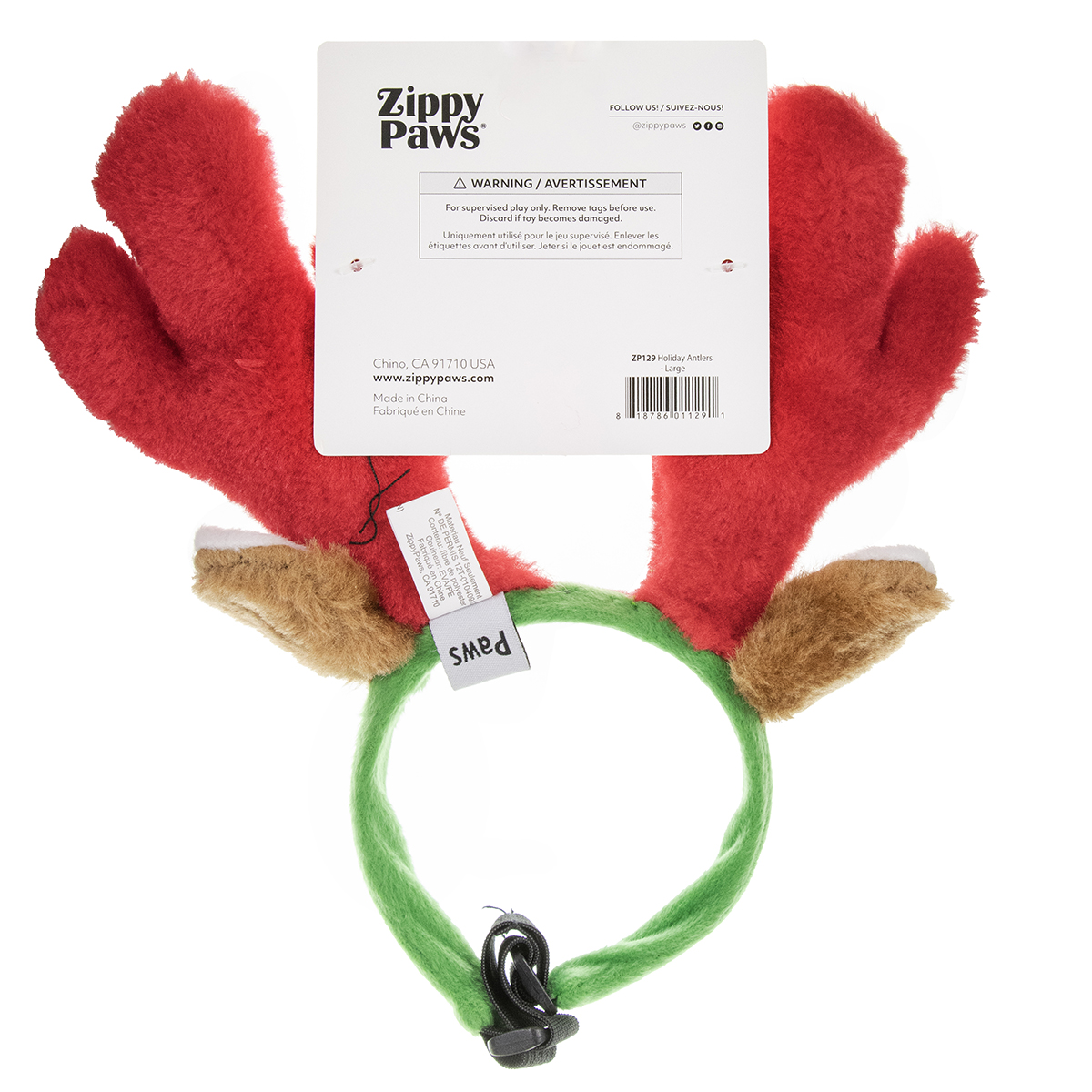 XMAS HOLIDAY CANINE ZIPPYPAWS HOLIDAY ANTLERS - Large