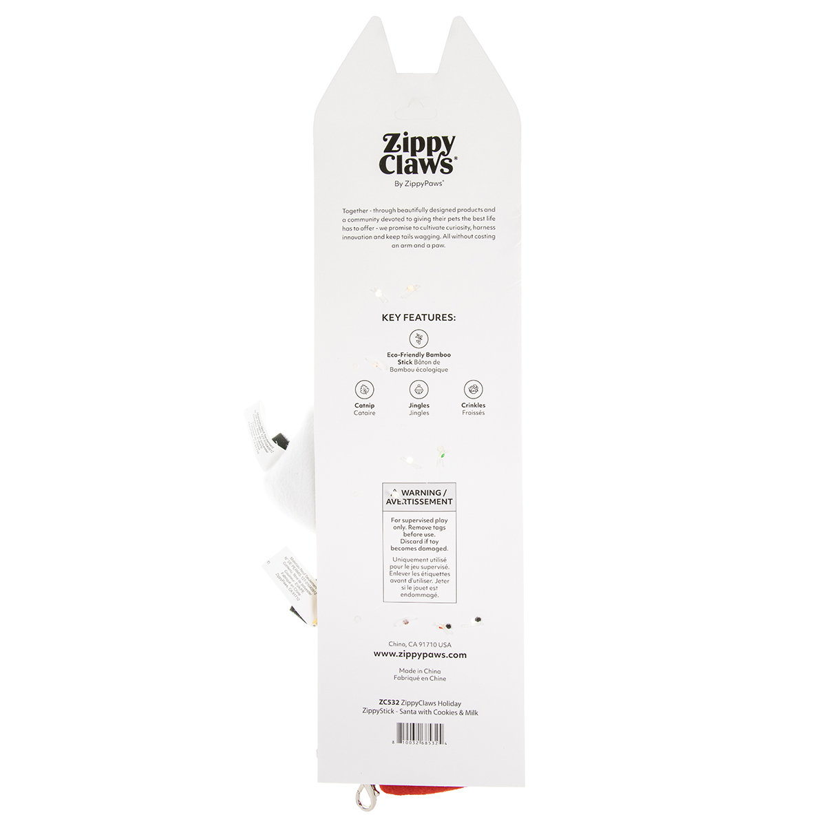 XMAS HOLIDAY FELINE ZIPPYCLAWS ZippyStick - Santa with Cookies & Milk
