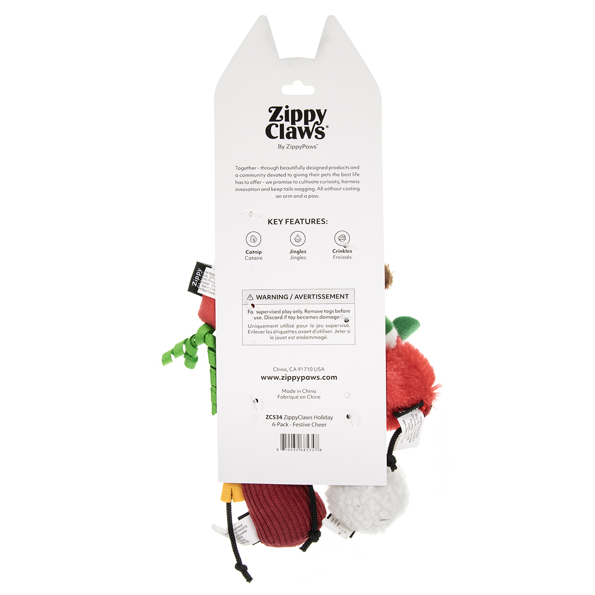 XMAS HOLIDAY ZIPPYCLAWS FELINE Festive Cheer - 6/pk